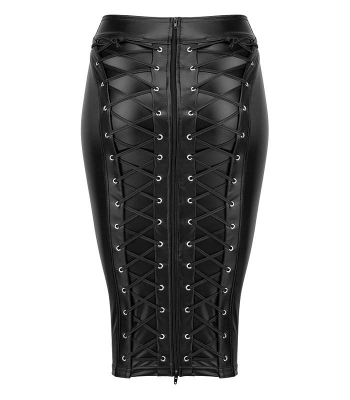 Eng anliegender Rock aus Powerwetlook mit langem Reißverschluss. Perfekte Länge um Ihre Beine zur Geltung zu bringen.